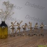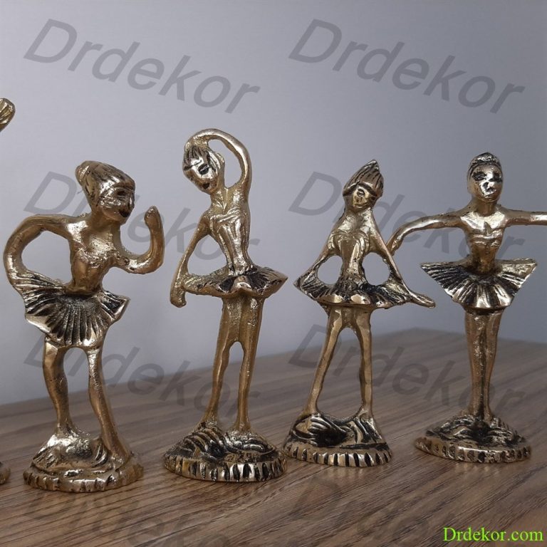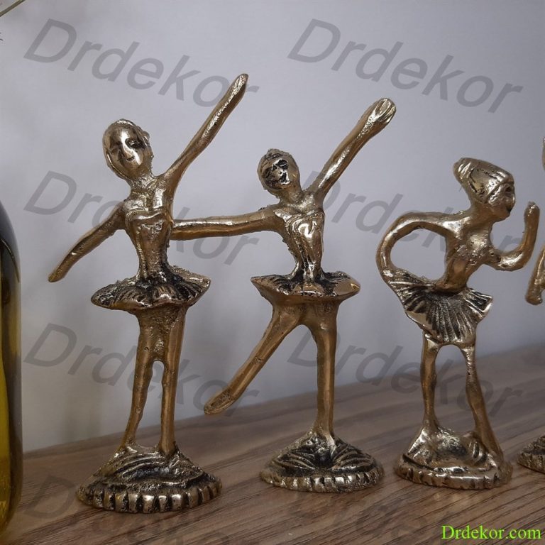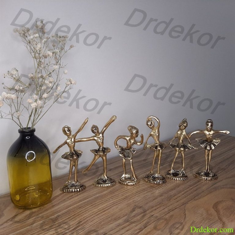 مجسمه برنجی بالرین یا رقصنده یکی از دکوری های پرفروش برنجی به حساب می آید. این شش مجسمه طراحی بسیار ظریف و زیبایی دارند که میتوانید به عنوان یک دکوری فوق العاده در کتابخانه، جلوی میز تلوزیون، روی میز عسلی و … از آنها استفاده نمایید. هر کدام از این مجسمه ها ارتفاعی تقربا 9 سانتی و عرضی حدود 5 سانتی دارند. این مجسمه ها به مجسمه رقصنده نیز شهرت دارند.